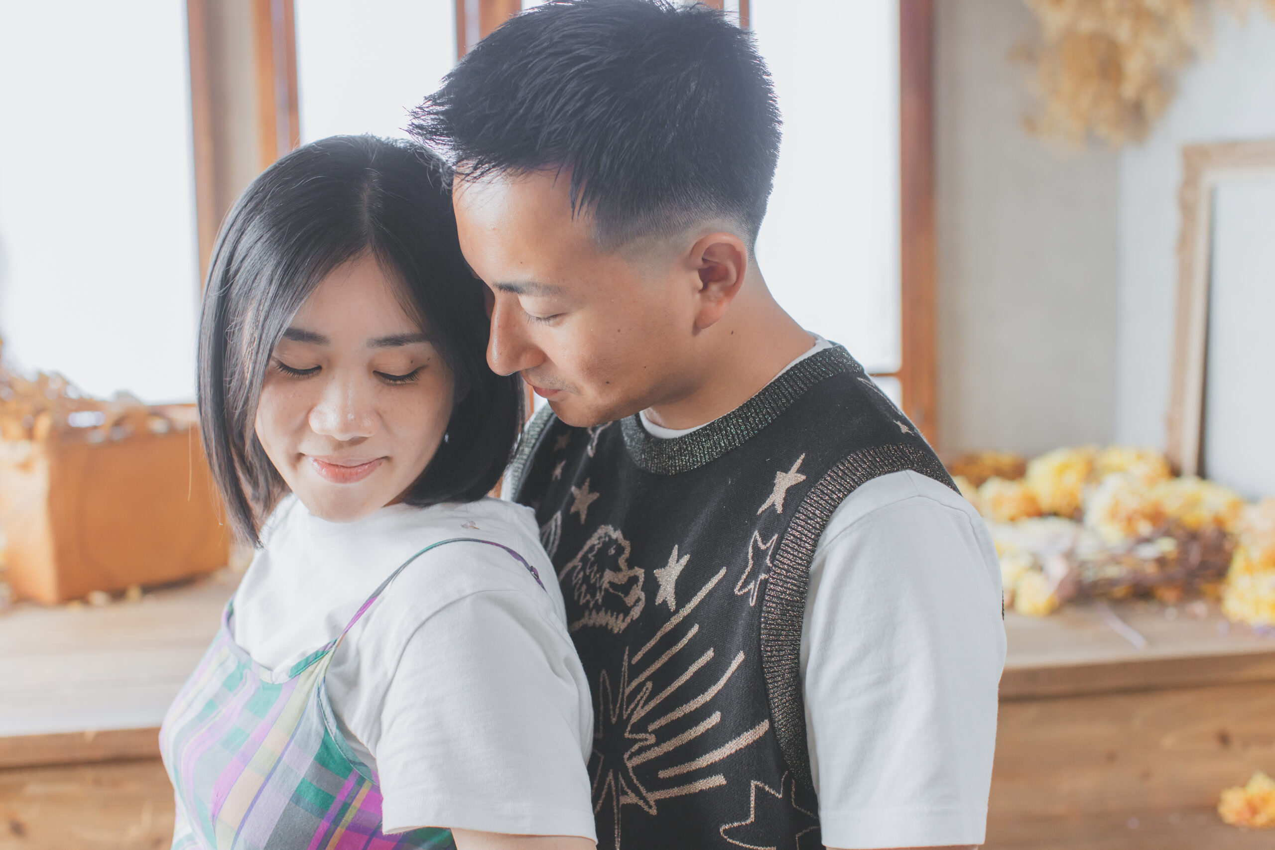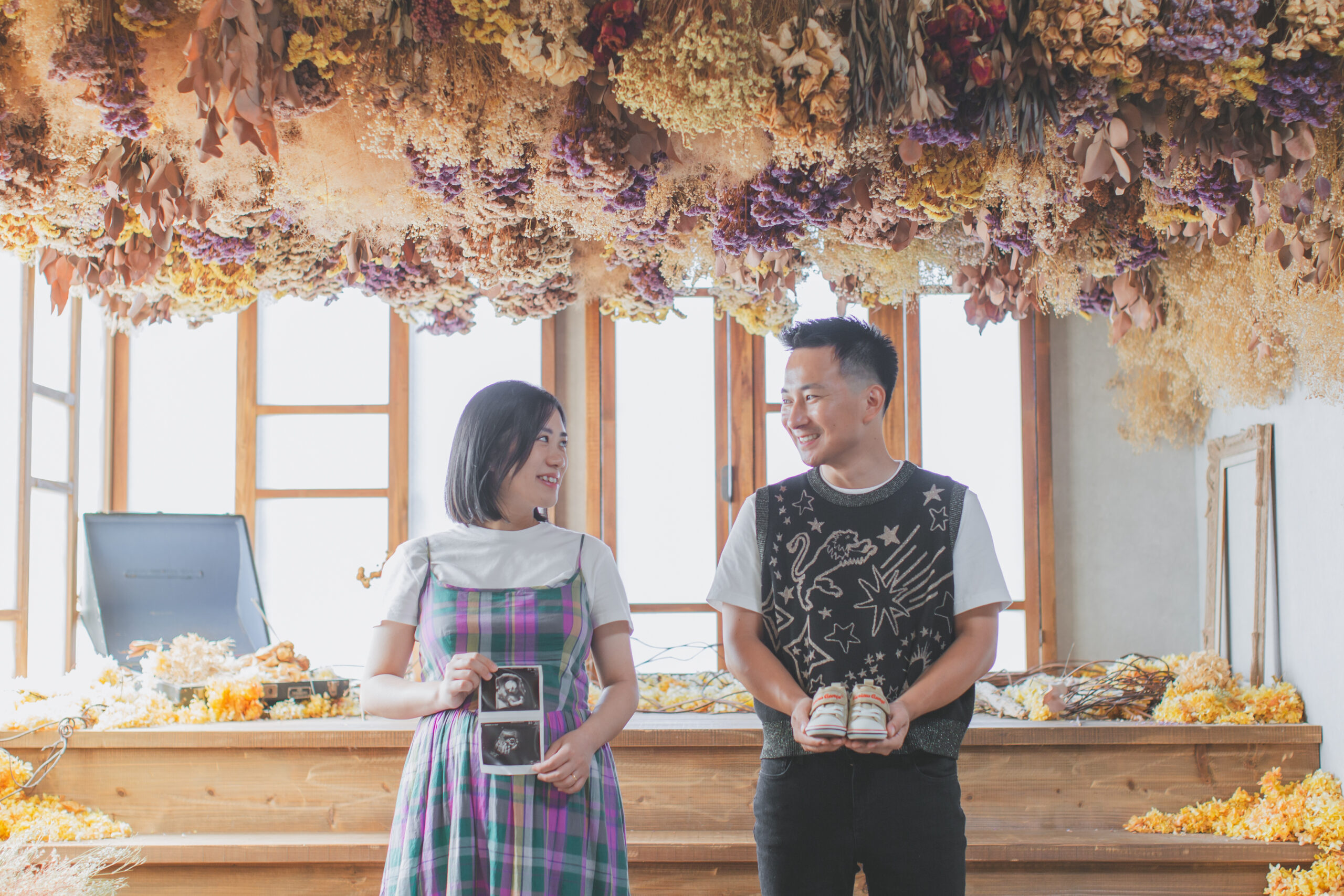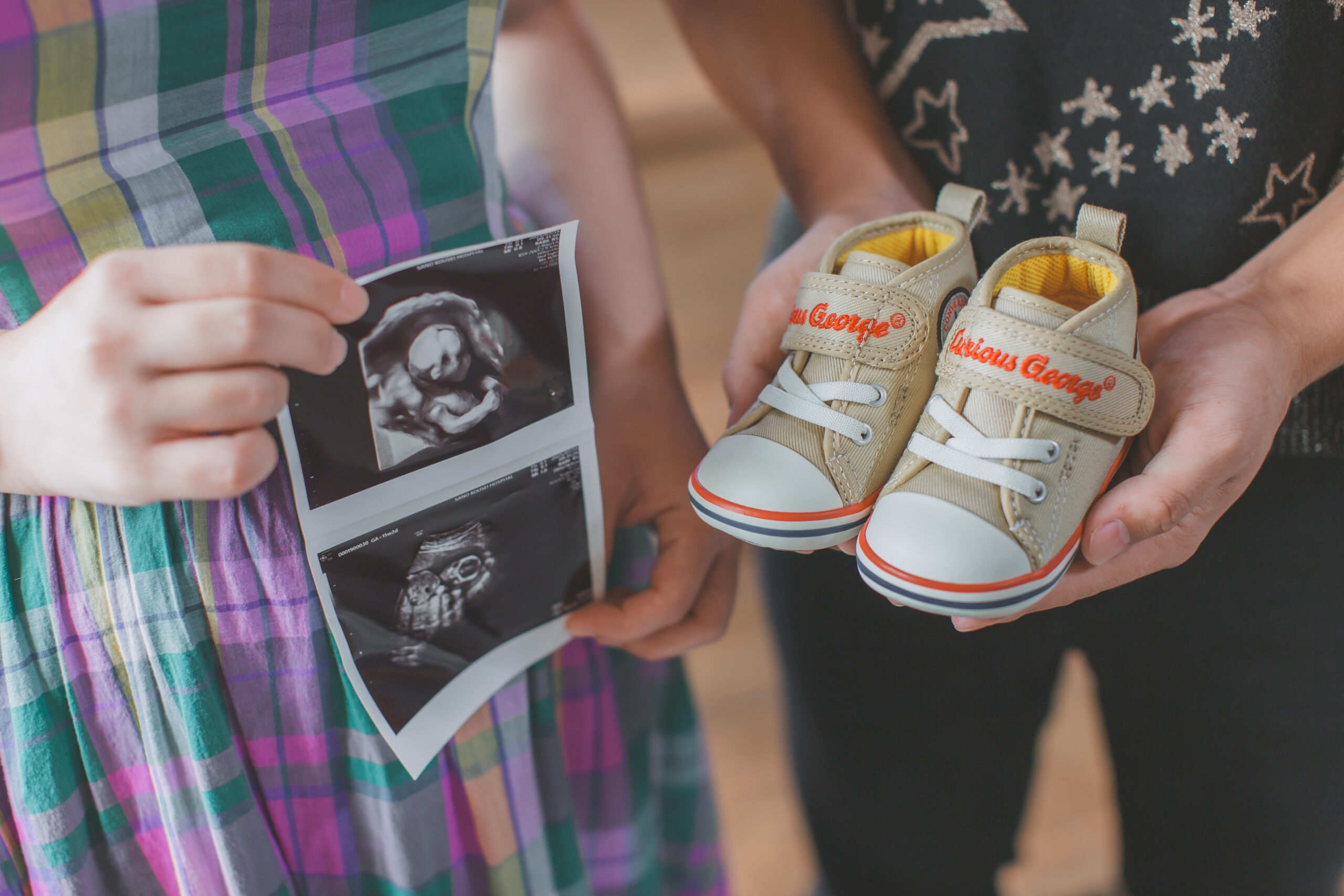 生まれてくる赤ちゃんの靴とエコー写真は、ふたりが選んできた宝物。