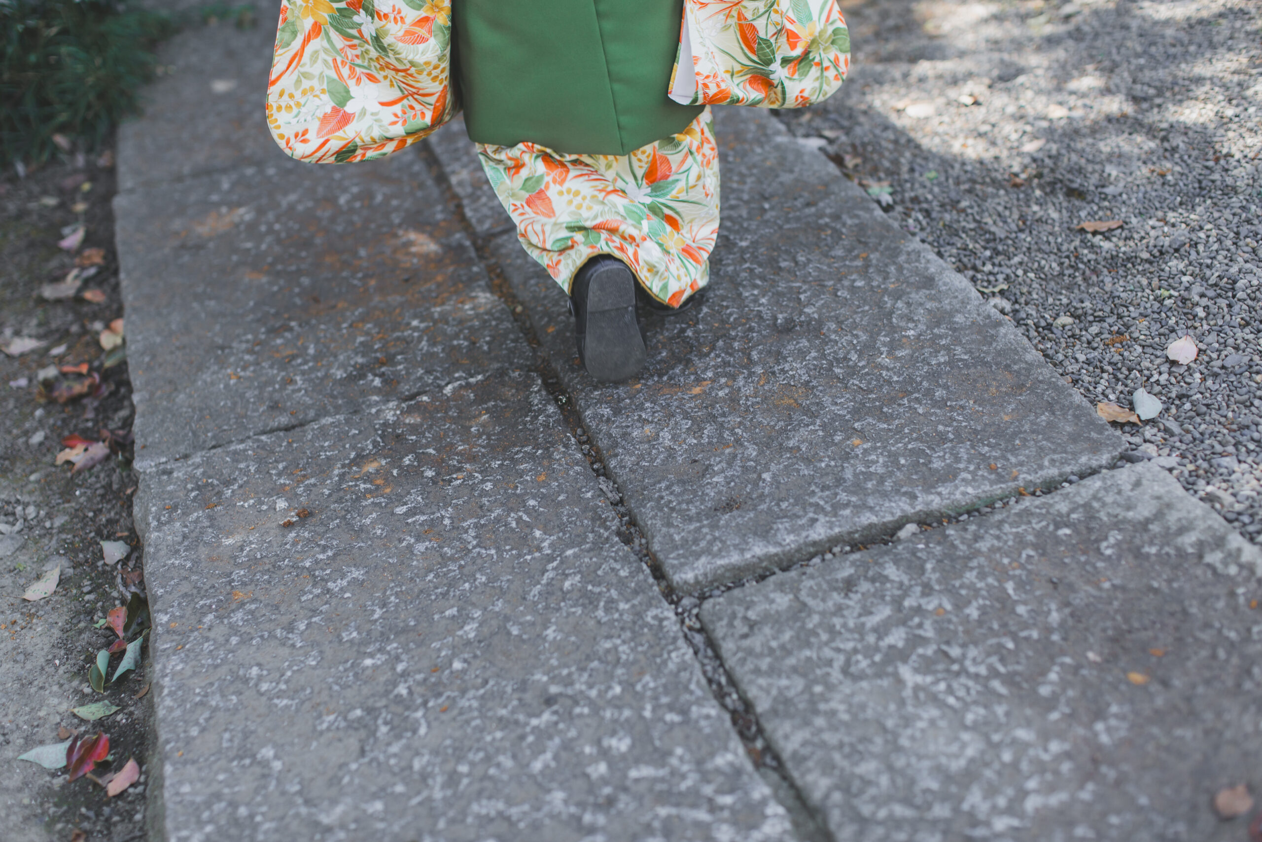 鳥居の赤、石畳の光、木陰の柔らかい明るさ…全部が3歳の子の元気さを引き立ててくれます。