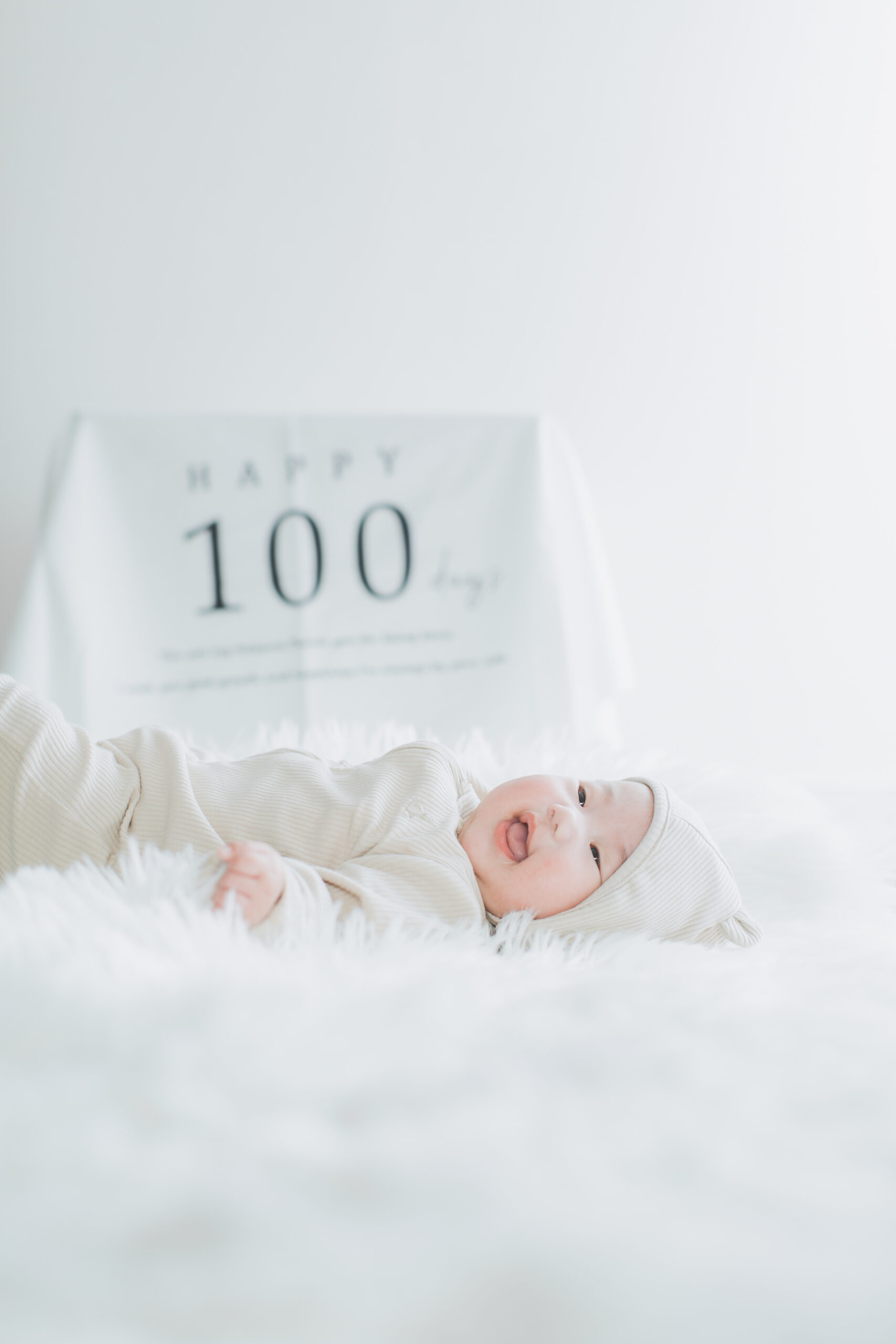 今回は、生後100日を迎えた女の子の100日祝い撮影をご紹介します。