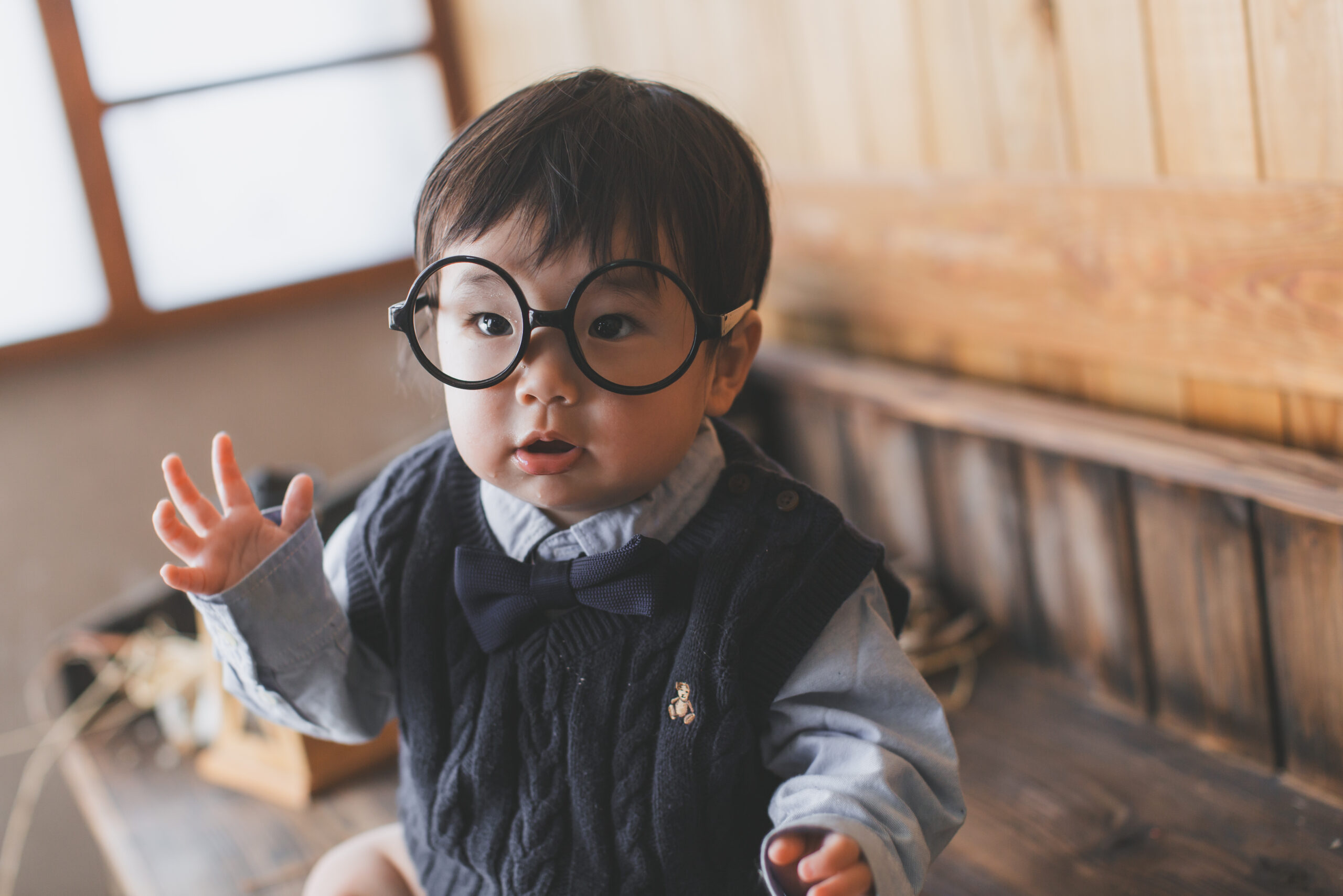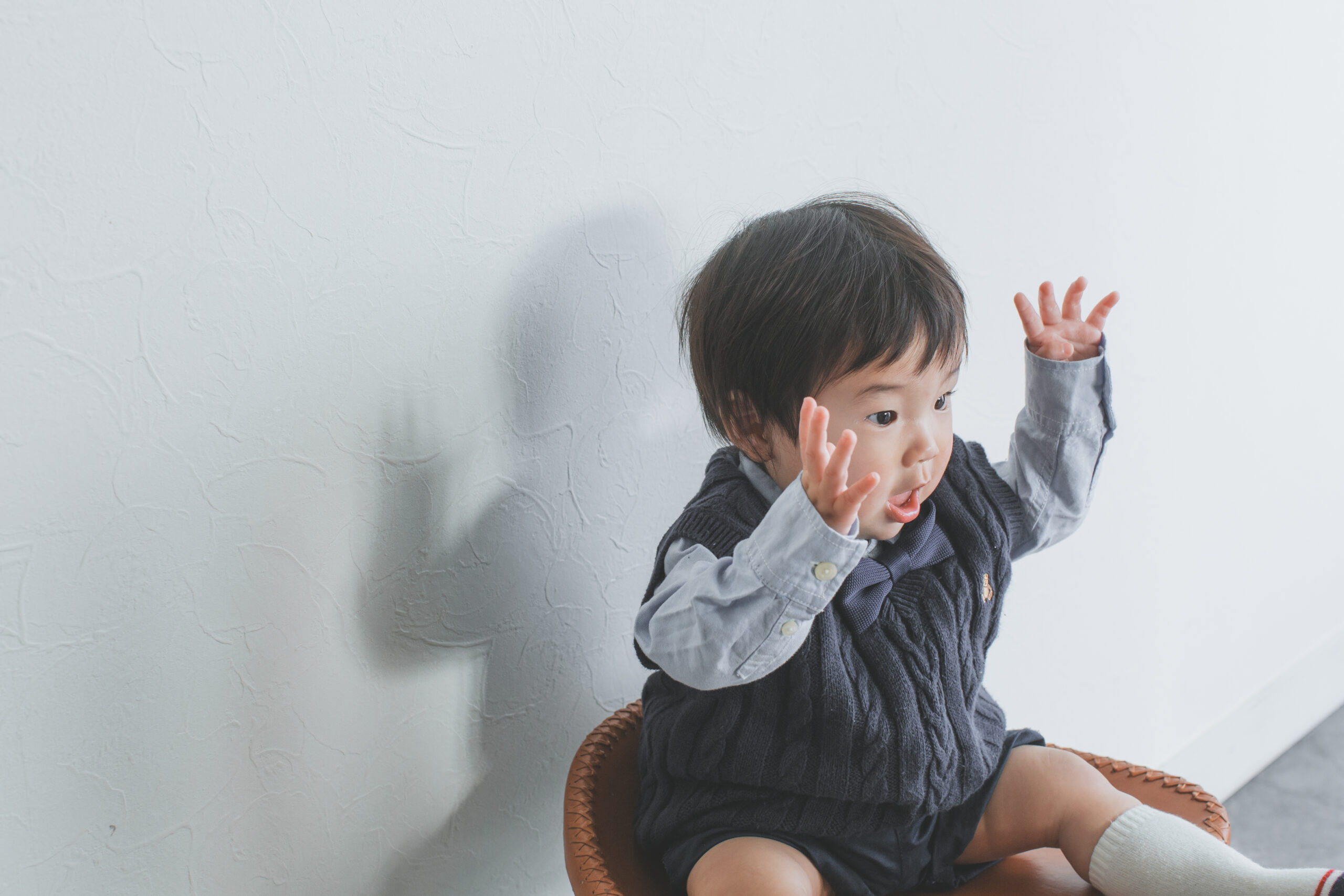 1歳らしい可愛らしい仕草と表情で、