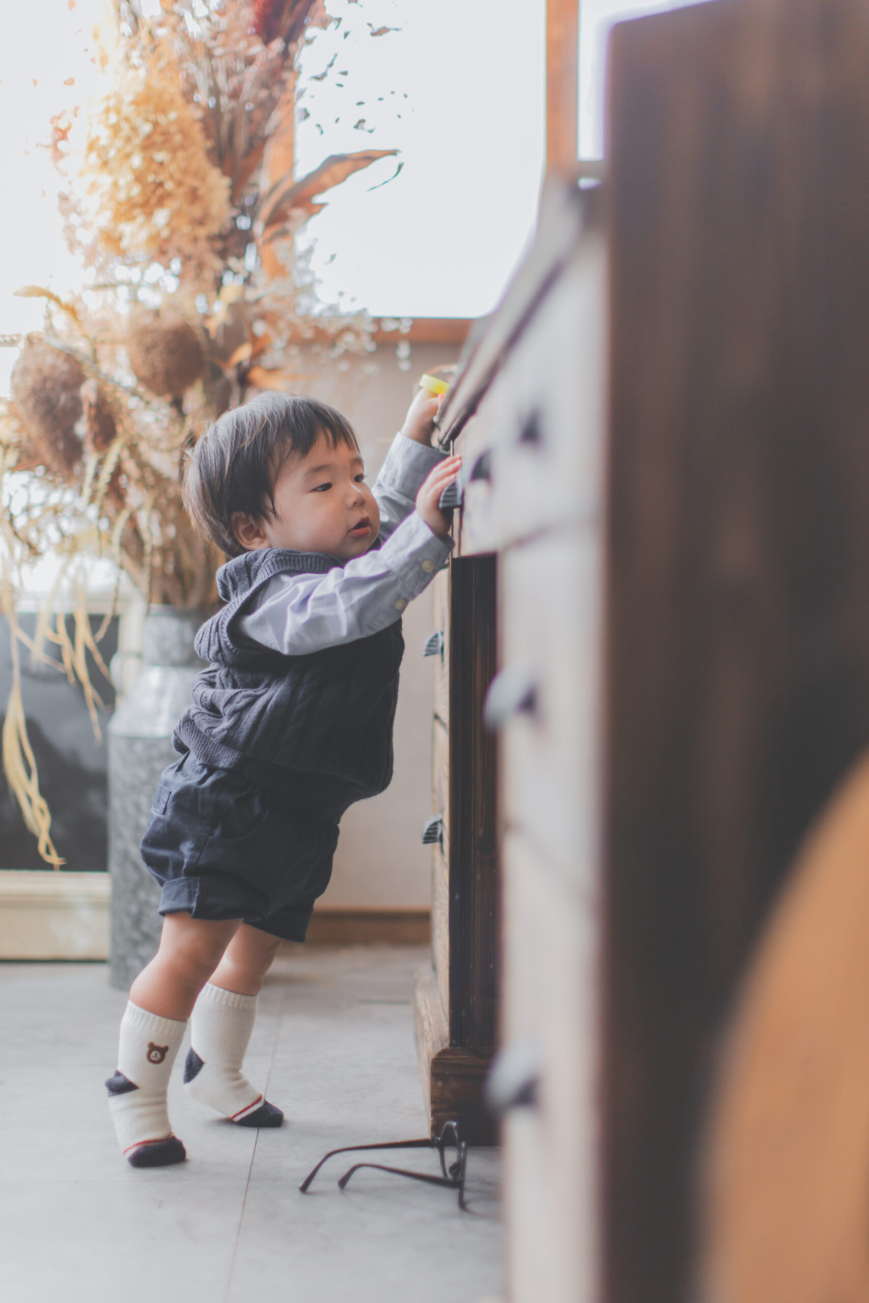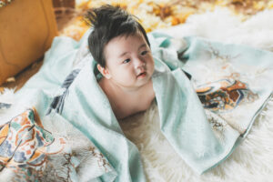 お兄ちゃんの七五三着付け中に、弟くんのバースデーフォトからスタート