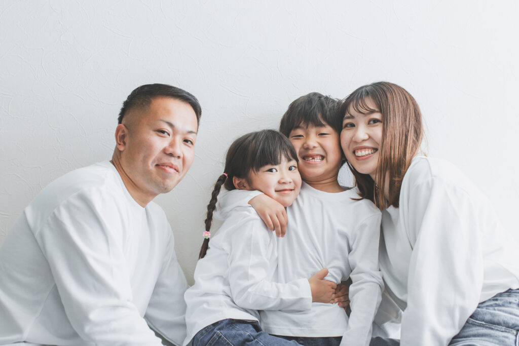 家族でお揃いの服を着て撮影すると、