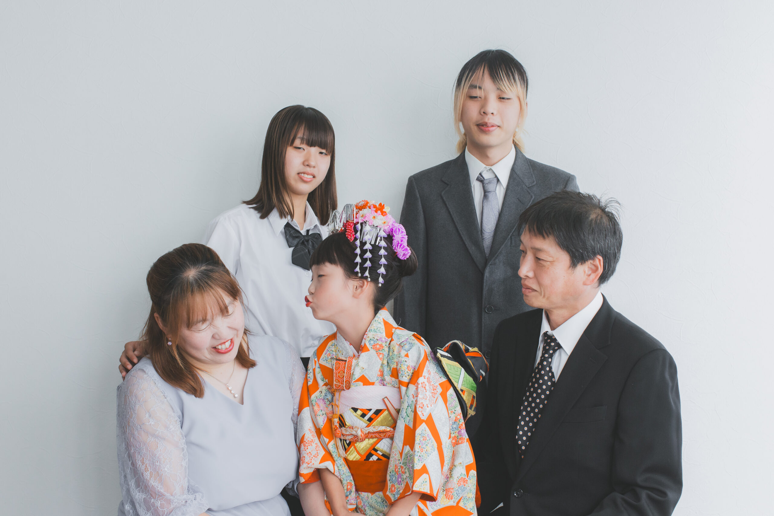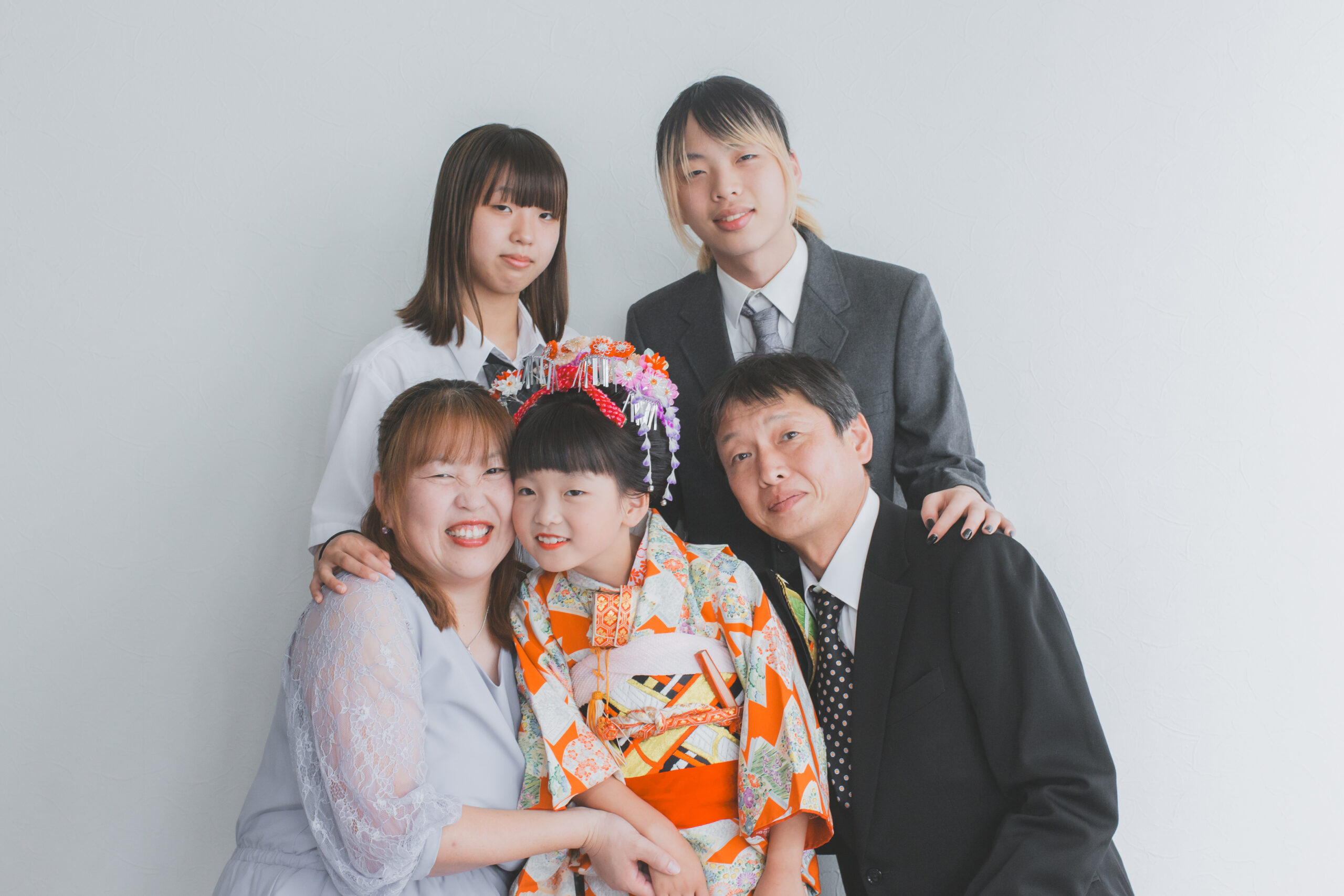 パパ・ママ・お兄ちゃん・お姉ちゃんと一緒に、5人でフォトスタジオに来店してくださいました。