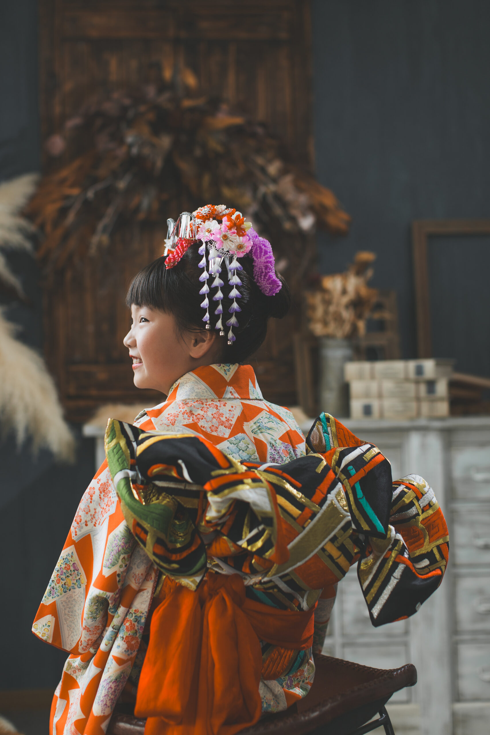 着物と日本髪の組み合わせは七五三ならではの装い。