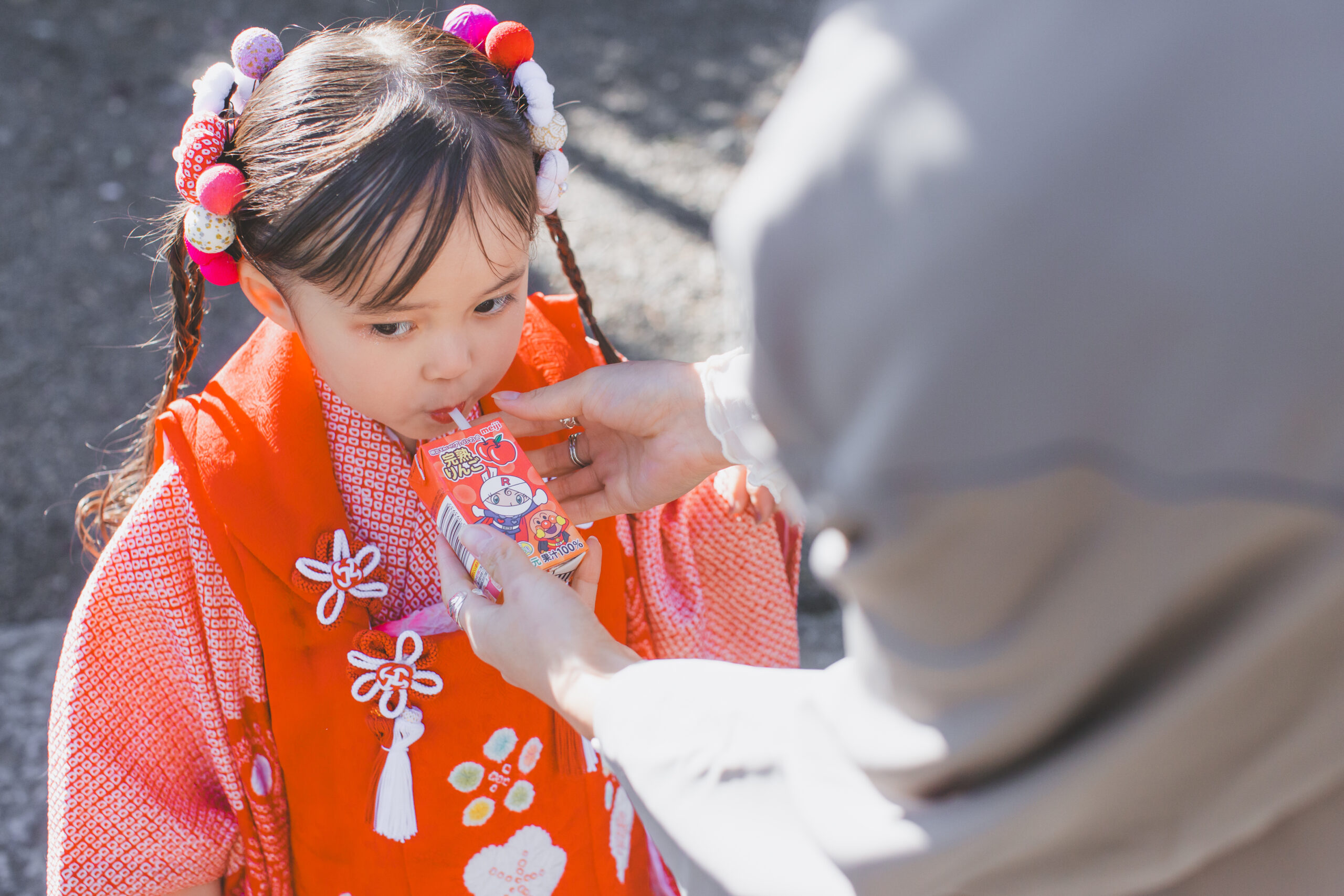 千歳飴をこっそり(?)つまみ食い。